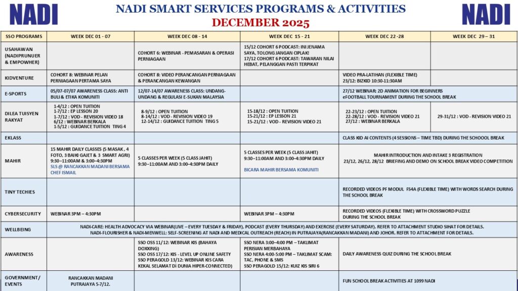 JADUAL AKTIVITI BULAN DISEMBER 2025