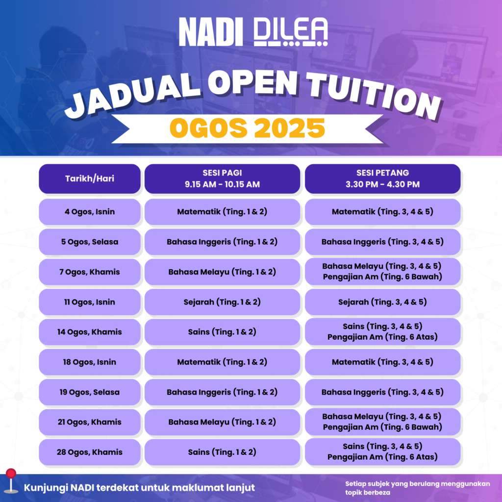 JADUAL KELAS TUISYEN OPEN & GUIDANCE DILEA
